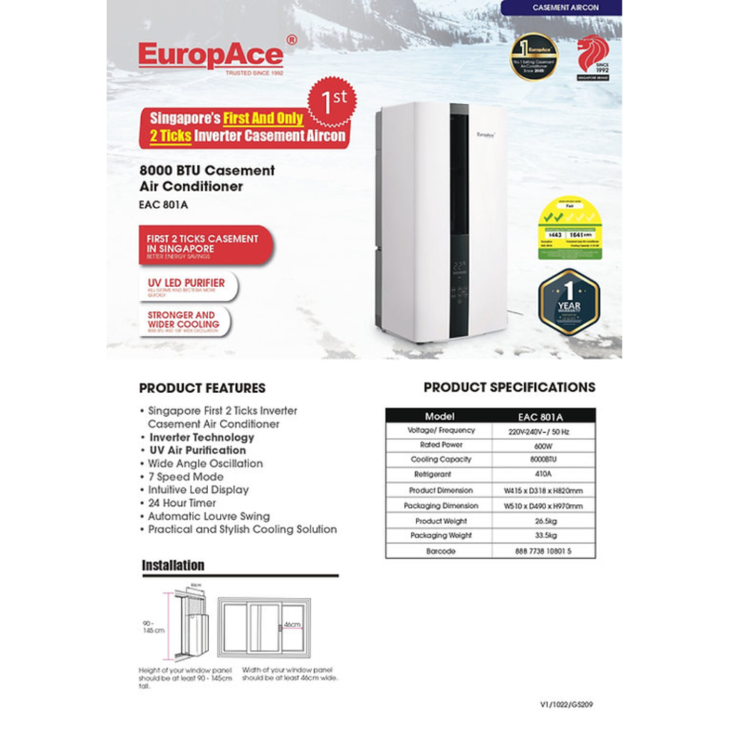 EUROPACE CASEMENT AIRCONDITIONER 8.000BTU